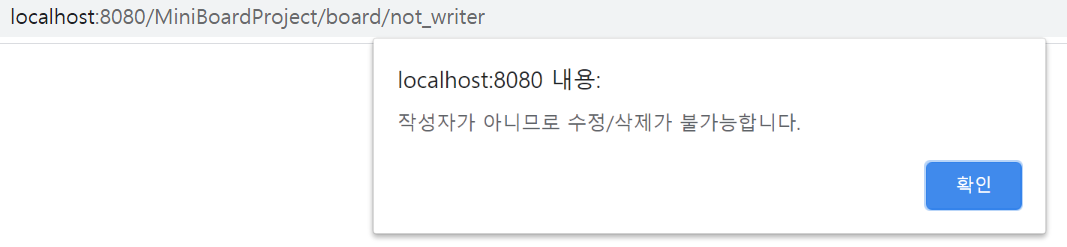 alert('작성자가 아니므로 수정/삭제가 불가능합니다.')