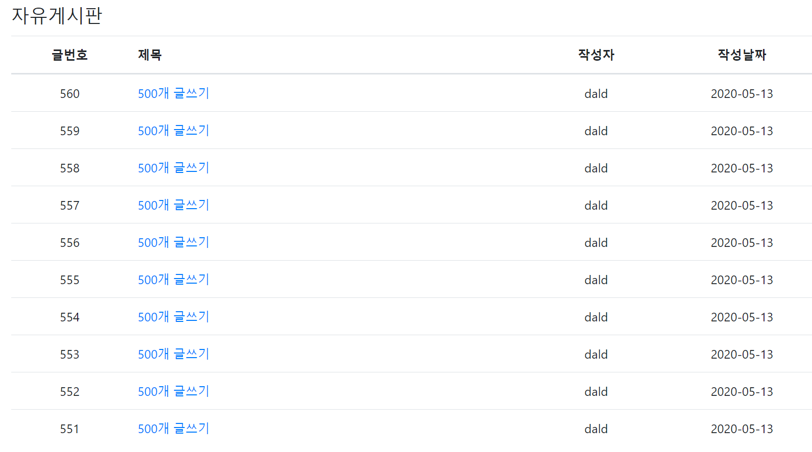 실행해보면 아래와 같이 10개의 글이 잘 보이는 것을 알 수 있다.