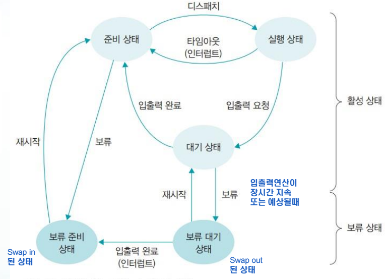 보류 상태 : 메모리에서 잠시 쫓겨난 상태로 일시 정지 상태라고도 불린다.