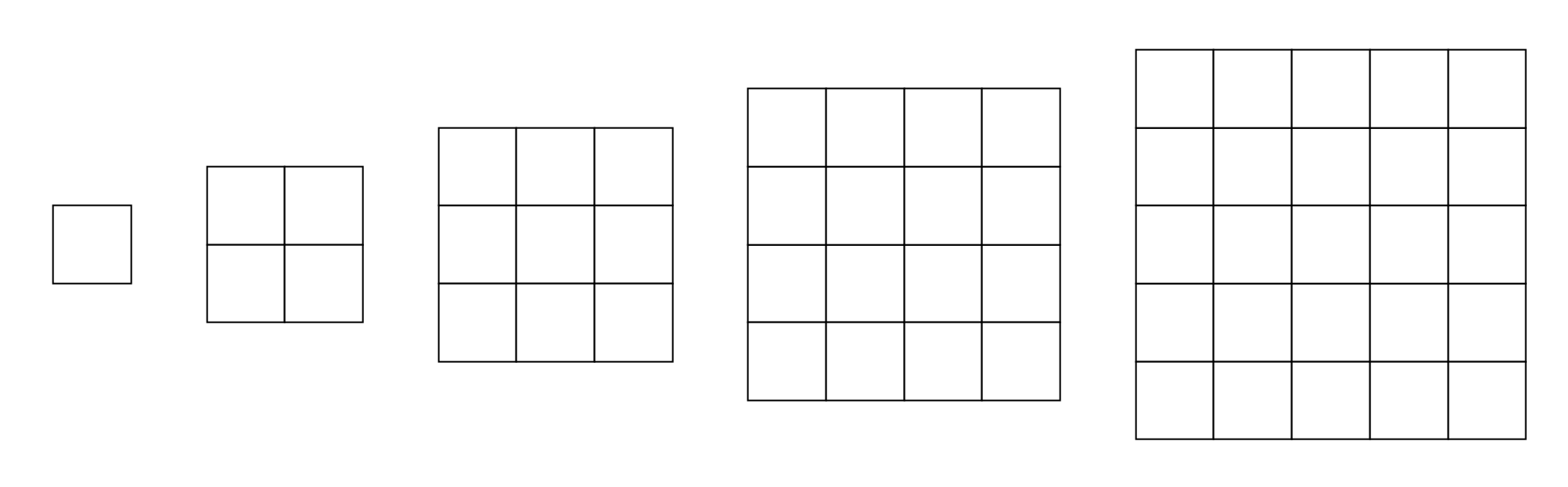 <그림 1>과 같이 정사각형 모양을 한 다섯 종류의 색종이가 있다. 색종이의 크기는 1×1, 2×2, 3×3, 4×4, 5×5로 총 다섯 종류가 있으며, 각 종류의 색종이는 5개씩 가지고 있다.