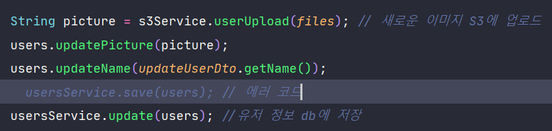 회원 정보 생성과 수정 시 db에 저장할 메서드를 따로 분리해야겠다.